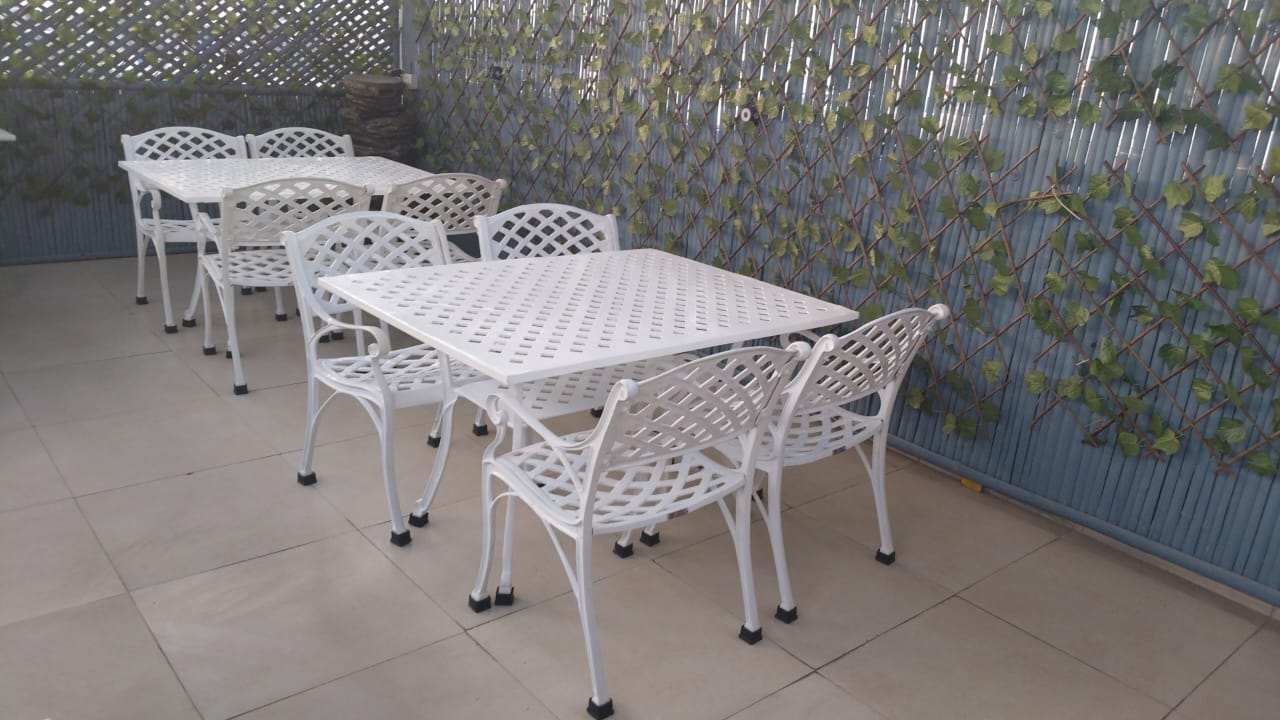 Our IMPERIAL Series furniture set is highly durable and sturdy. It is also larger than our MAHARAJA series making it more ideal to dine on. It is made with cast aluminum which makes it weather proof, rust proof, long lasting and easy to maintain. Ideal for outdoor settings like garden, patio, deck, balcony, corridor, pool-side, lounge, restaurants, cafes, and park