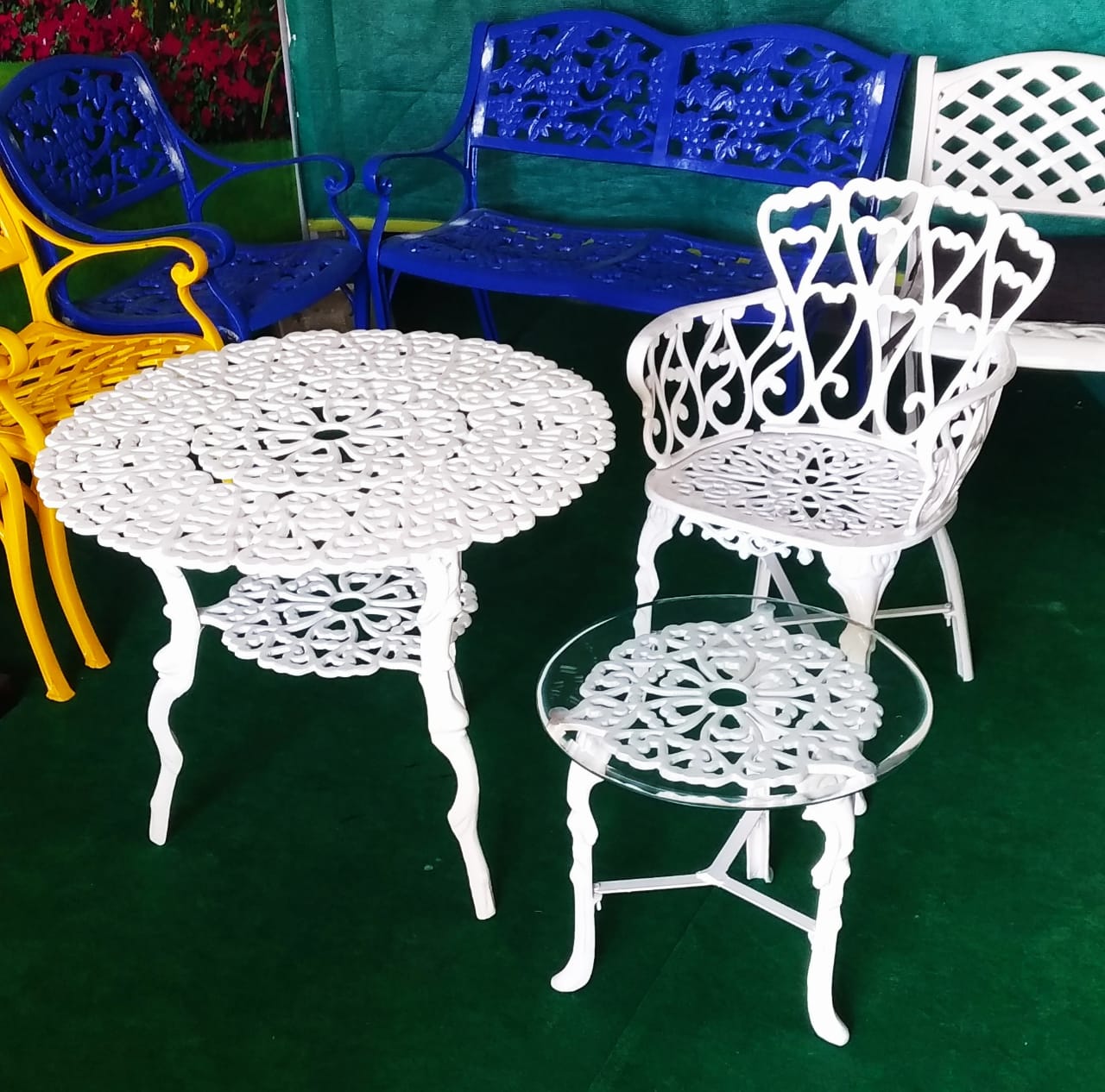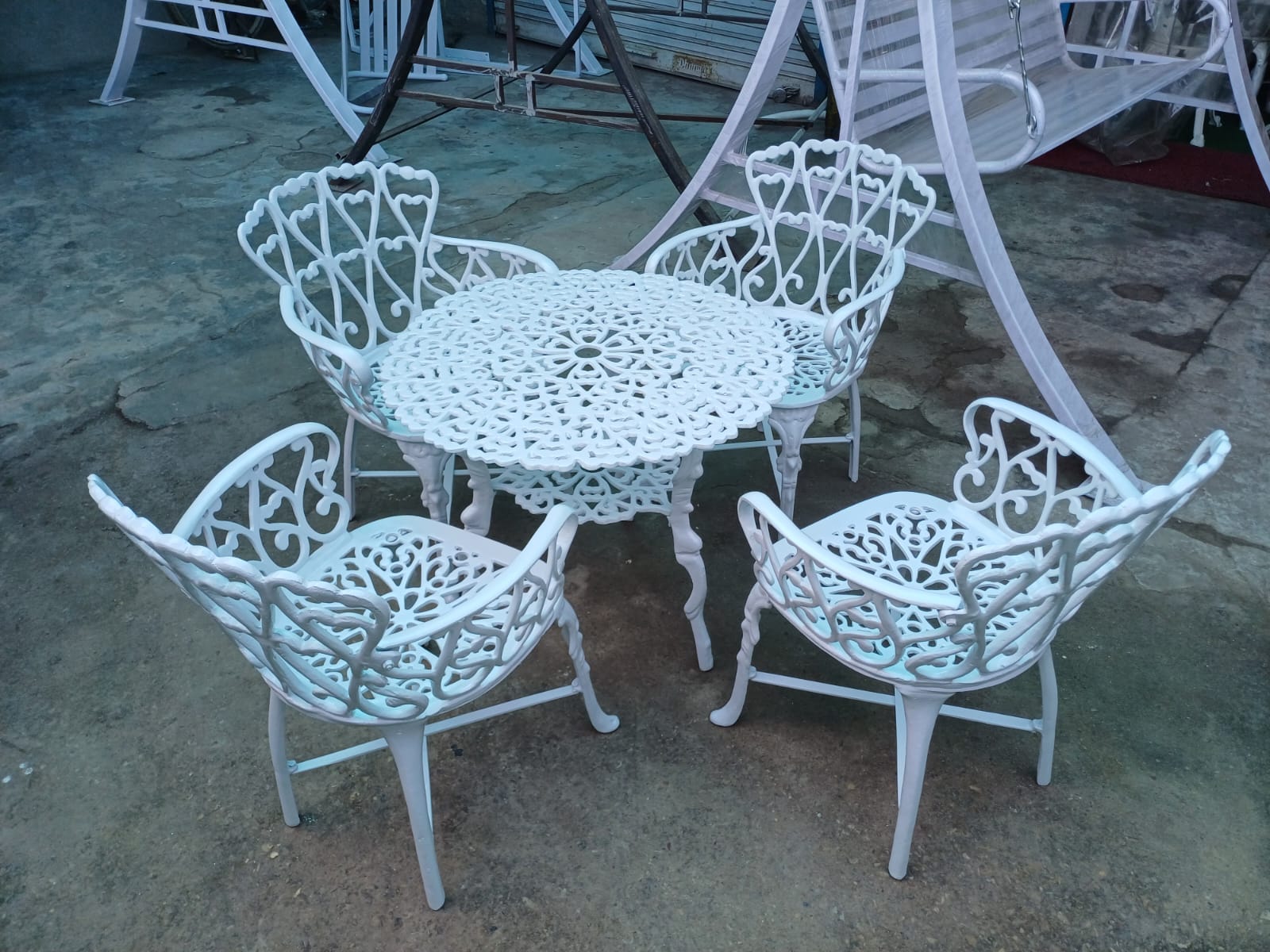 Description: Transform your outdoor spaces with the elegant and durable Cast Aluminium Outdoor Furniture by Prabh Enterprises, featuring an intricate design. This collection seamlessly blends classic charm with modern functionality, making it the perfect addition to any patio, garden, or balcony.